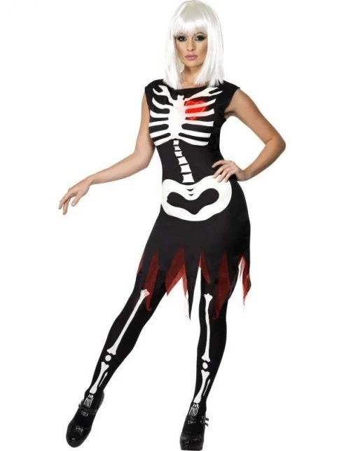 Bright Bones Glow in the Dark Costume, Dress with LED Lights