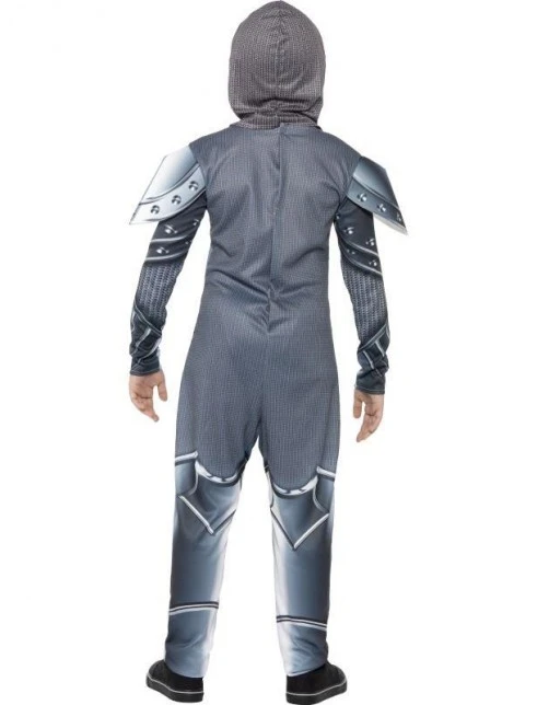 Deluxe Armoured Knight Costume, Grey, with Jumpsuit & Headpiece, Digital Print.