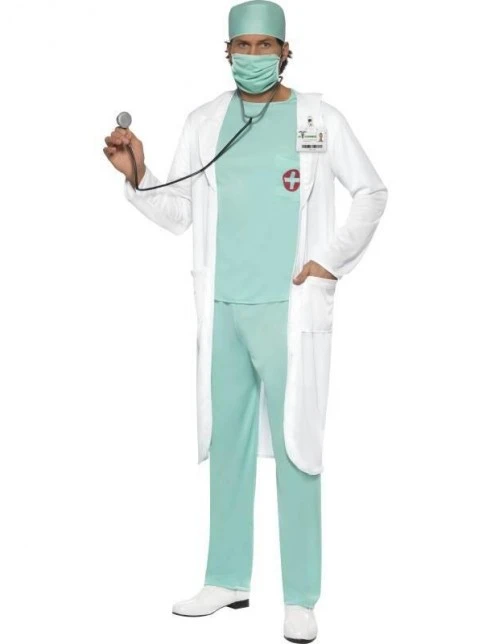 Doctor Costume, Top, Trousers, Hat, Mask, Clear Name Tag & Coat