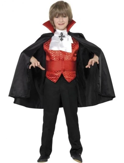 Dracula Boy Costume, with Cape, Cummerbund, Cravat and Waistcoat