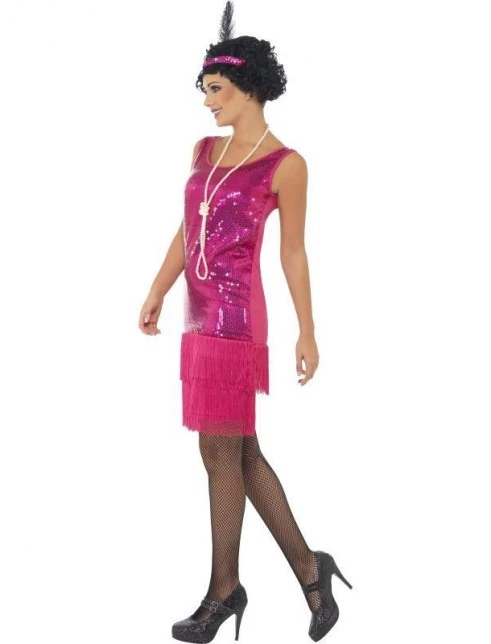 Funtime Flapper Costume, Hot Pink, with Dress, Headpiece, Necklace