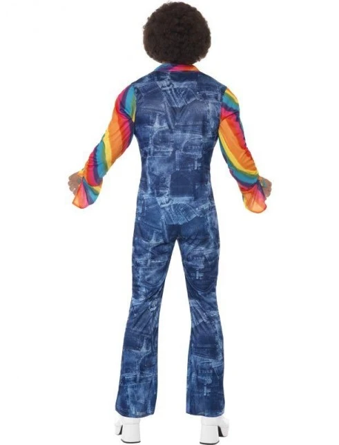 Groovier Dancer Costume, with Denim Effect Jumpsuit and Mock Shirt