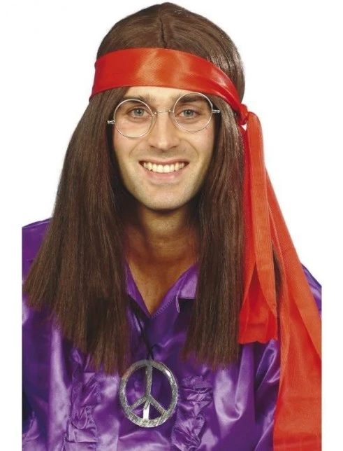 Hippy Man Kit, Brown Wig, Specs, Peace Sign Medallion & Headband
