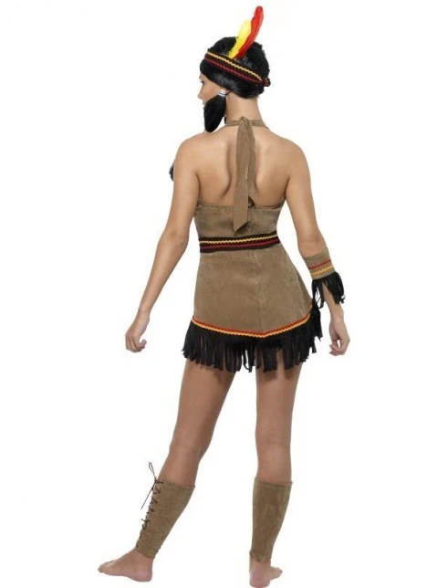 Indian Woman Costume, Brown, with Dress, Belt, Headband, Armband and Leg Cuffs