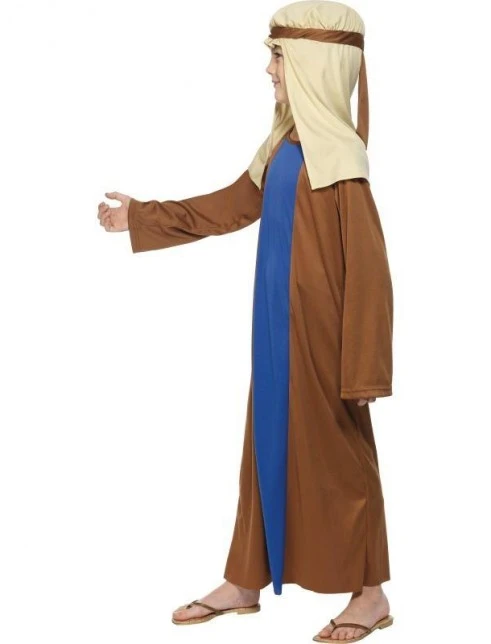 The Joseph Costume for children is perfect if you are looking for a good value costume for your child, taking part in a nativity play. This Boys Joseph Costume comes with a long brown robe with blue down the front with long brown sleeves. The Joseph Nativity Costume is complete with a matching beige and brown headpiece. Does not include sandals.