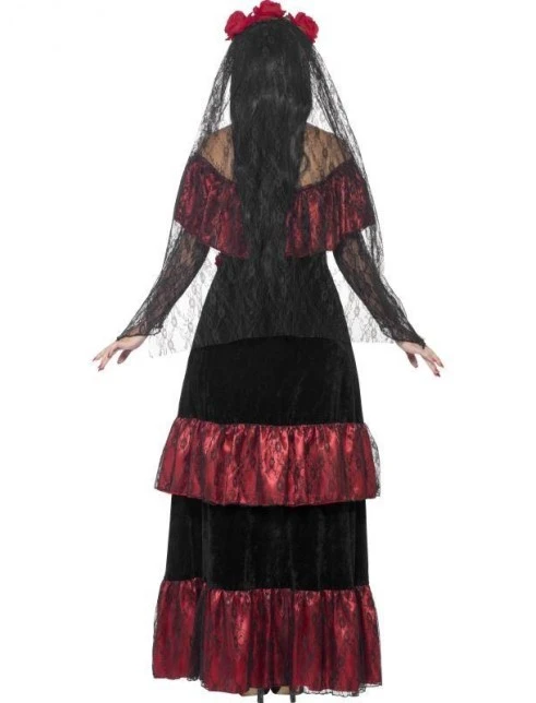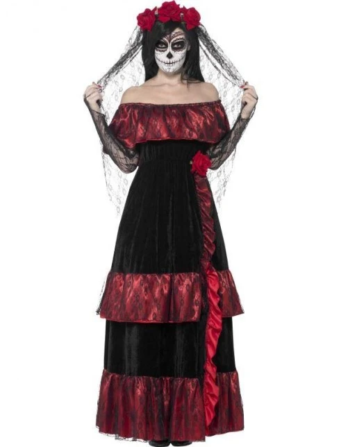 Womens Day of the Dead Bride Costume, Deluxe, with Dress and Rose Veil.