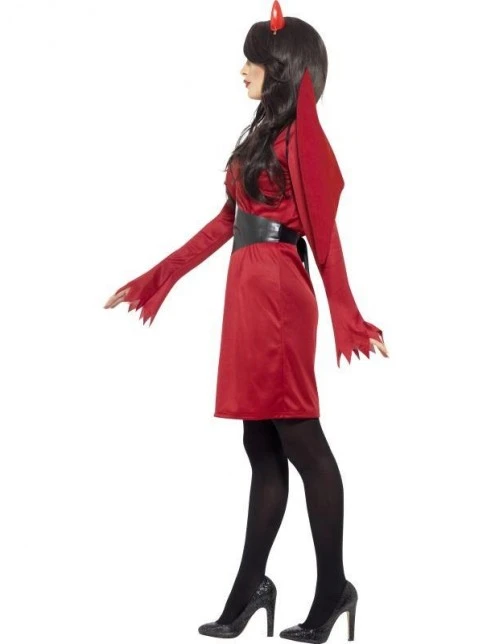 Womens Economy Devil Costume, Red, with Dress, Wings, Belt & Horns.