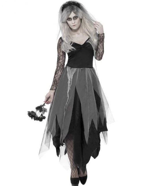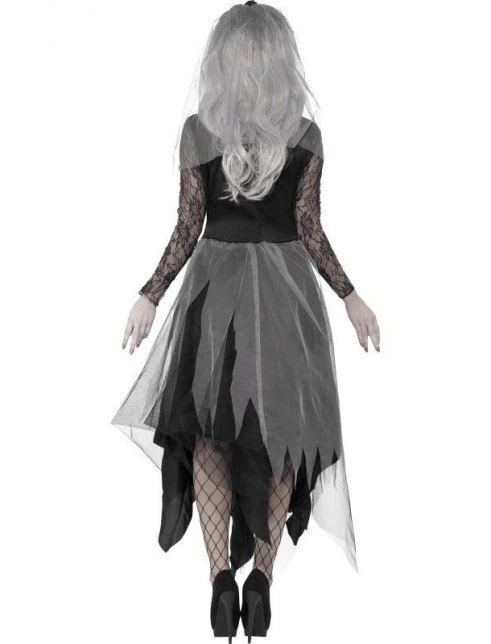 Womens Graveyard Bride Costume, with Dress and Rose Veil.