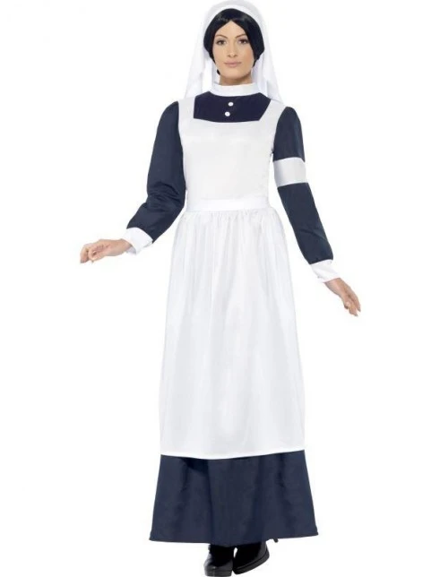 Womens Great War Nurse Costume, White, with Dress and Headpiece.