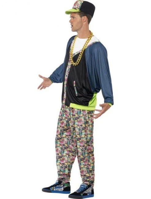 Mens 80’s Hip Hop Costume, Patterned, with Jacket, Trousers and Hat.