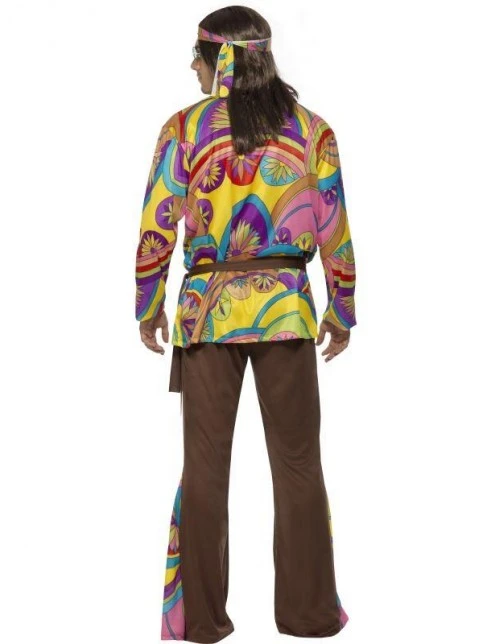 Psychedelic Hippie Man Costume, Multi-Coloured, with Trousers, Shirt, Headband and Belt