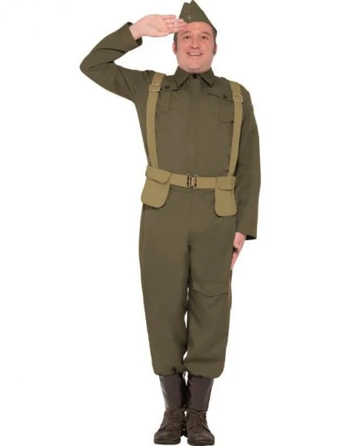 WW2 Home Guard Private Costume, Trousers Ankle Covers, Jacket, Hat & Harness Belt